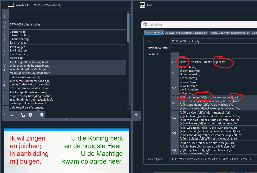 For a few songs I made a center, left and right alignment tag; {cent}, {al}and {ar}.